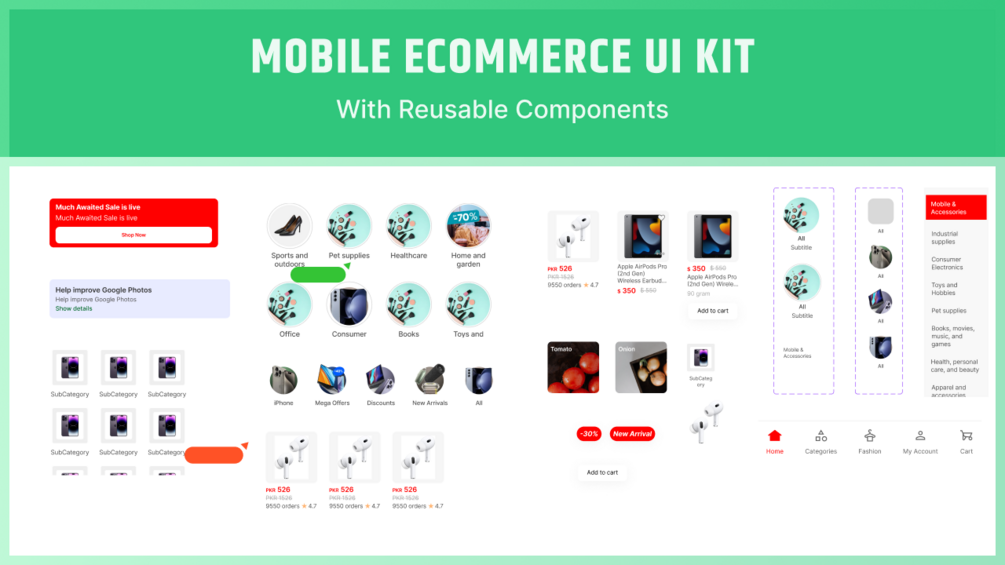 ECommerce UI Components Kit - Mobile With Reusable Components & variants