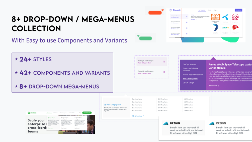 Collection of 8+ Dropdown Mega-menus