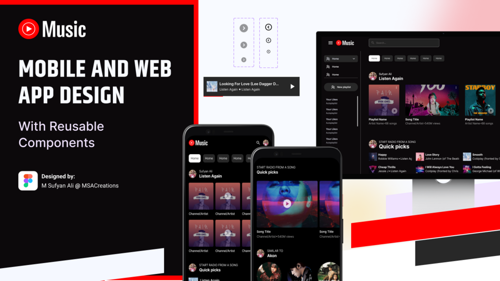 Youtube Music Web & Mobile App UI Design Kit with Reusable Components